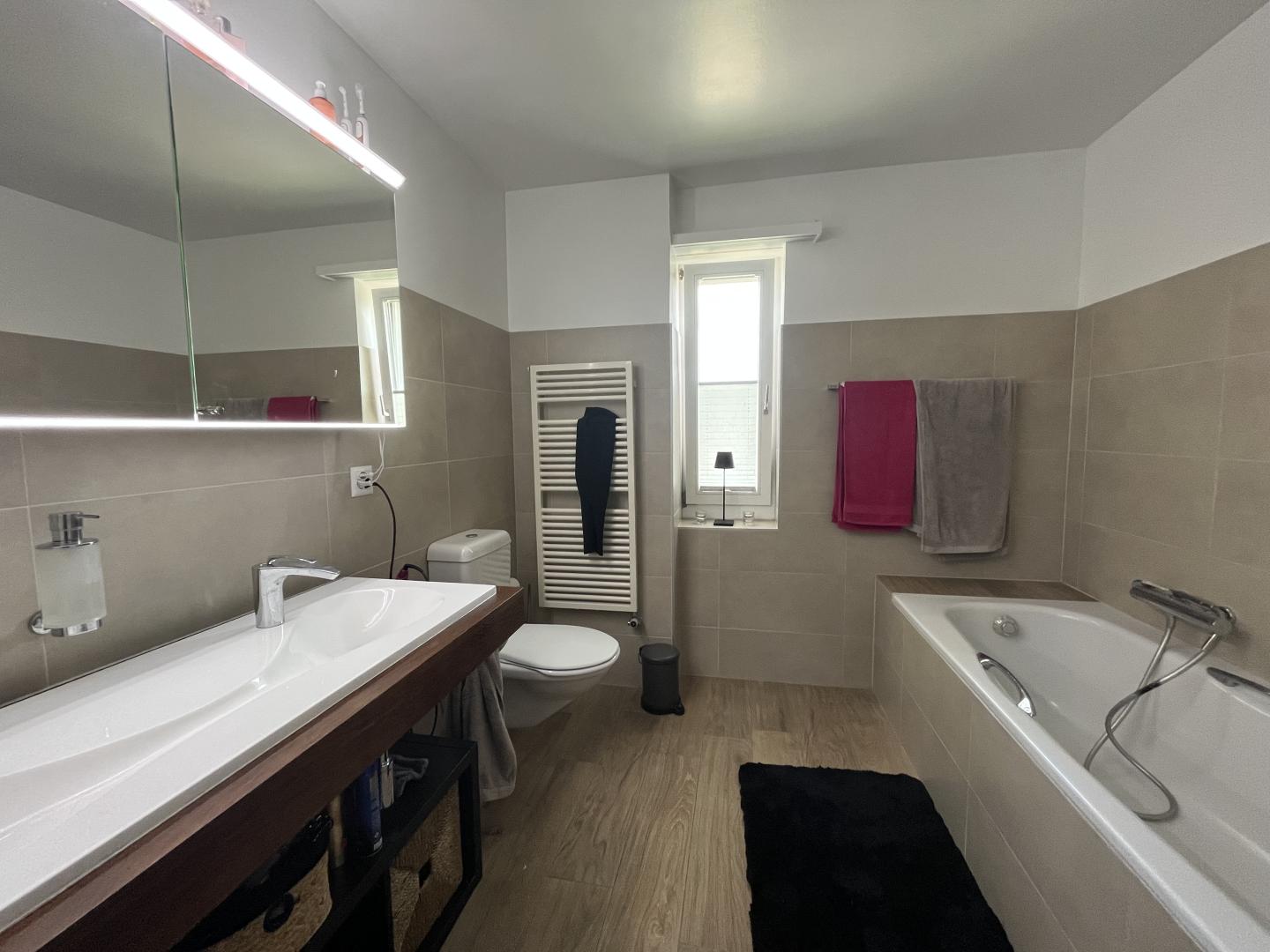 Ce magnifique appartement de plain-pied, avec un splendide jardin arborisé d'environ 400m2, se compose ainsi: un grand hall d'entrée avec armoires murales, un vaste espace séjour agrémenté d'une magnifique cheminée en pierre naturelle, un espace bureau, une cuisine moderne, avec îlot central, ouverte sur un bel espace salle à manger, trois chambres à coucher ainsi que deux salles de bain (1x douche et 1x baignoire). Une cave, un garage (box) privatif, ainsi qu'une place de parc extérieure complètent ce bien plein de charme et de cachet. Si vous recherchez un vrai havre de paix afin de vous ressourcer, alors ce bien immobilier est fait pour vous.