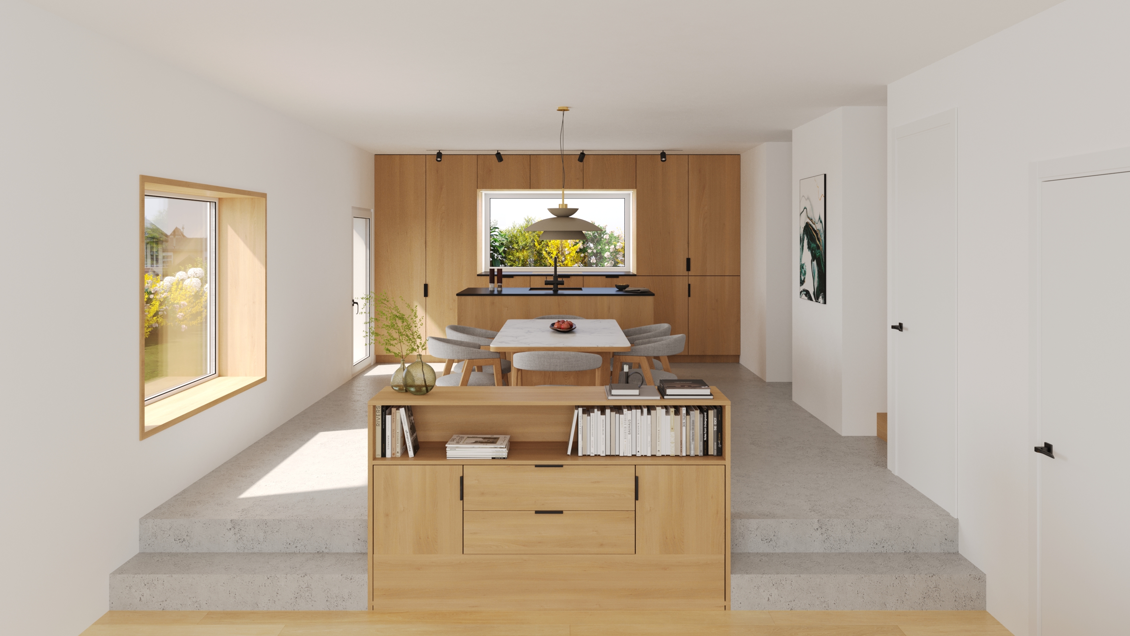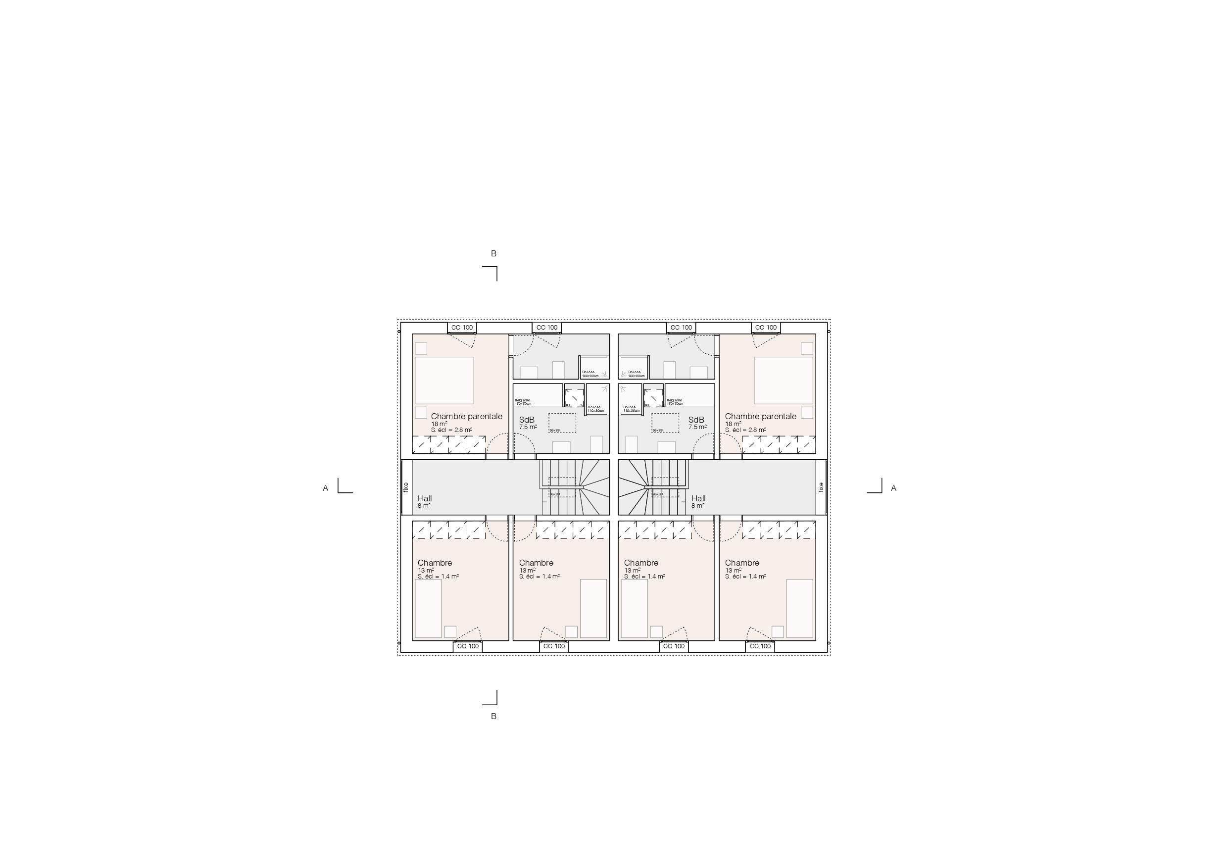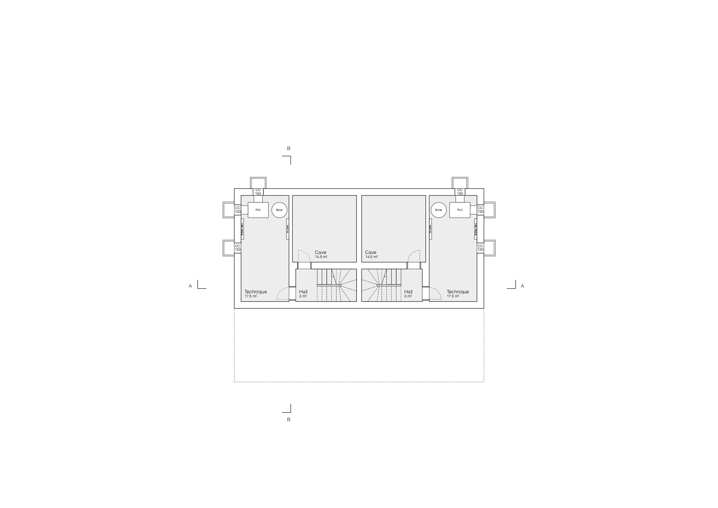 Chacune des deux maisons se compose ainsi: un vaste espace séjour, une cuisine ouverte sur une grande salle à manger, quatre belles chambres, un WC-visiteurs et deux salles de bain (1x WC/douche/lavabo + 1 WC/baignoire/lavabo).