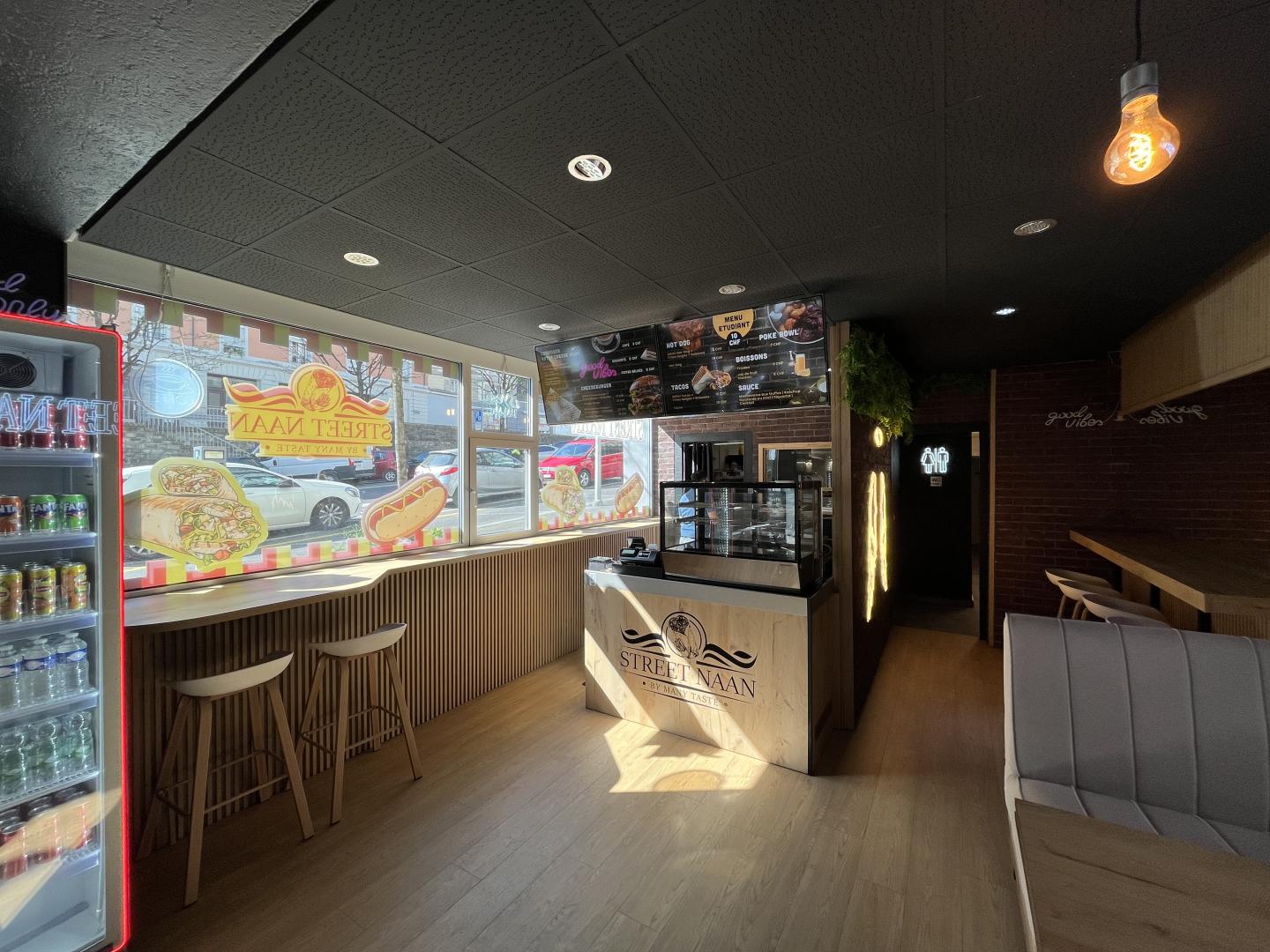 Ce restaurant a pignon sur rue et possède une très grande vitrine. Il est idéalement situé, dans une rue passante, à proximité immédiate des clients (bureaux, écoles professionnelles, ...).