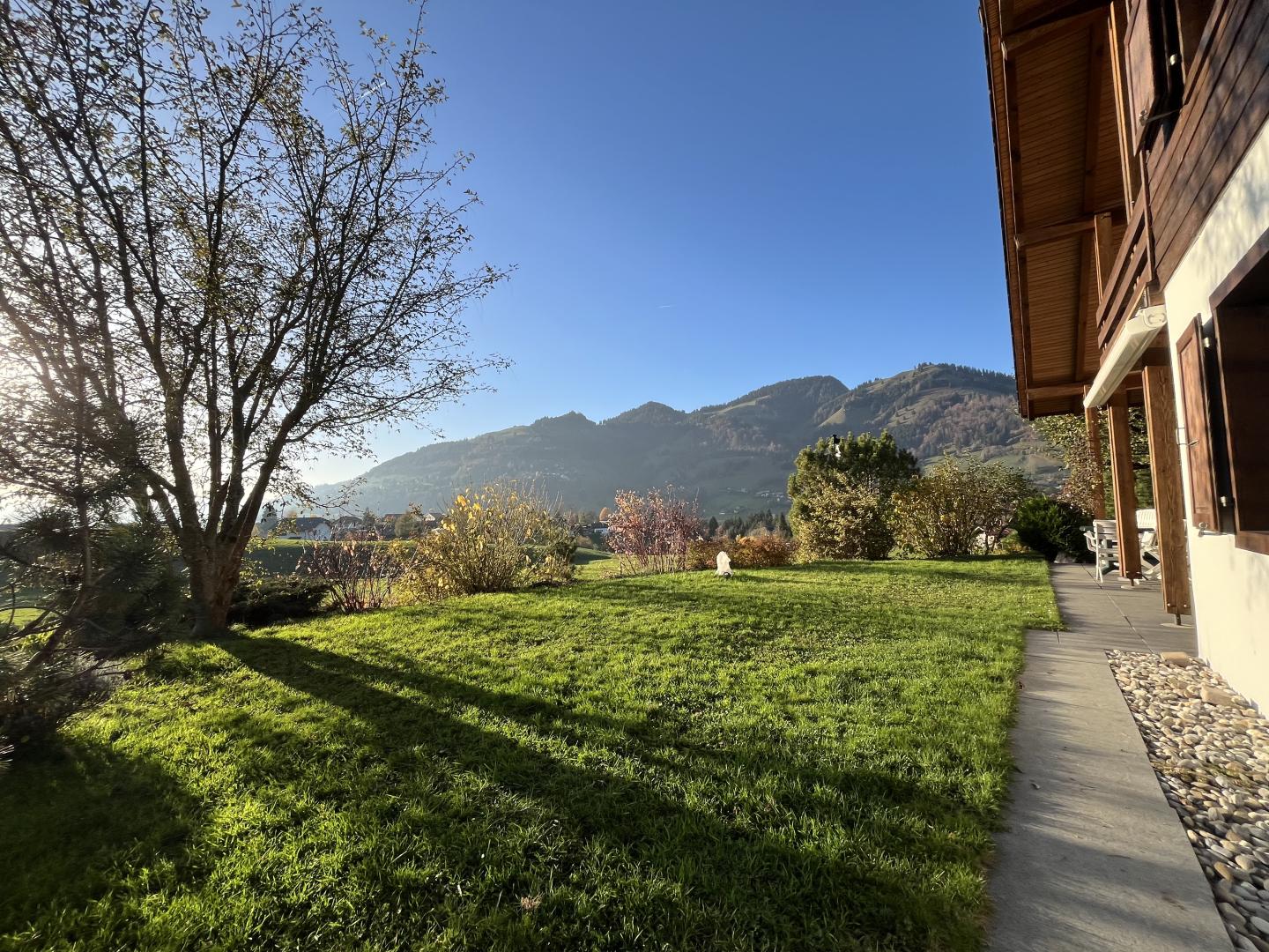 Ce magnifique chalet, entièrement rénové (intérieur et extérieur) est situé sur les hauts de la commune de Charmey.