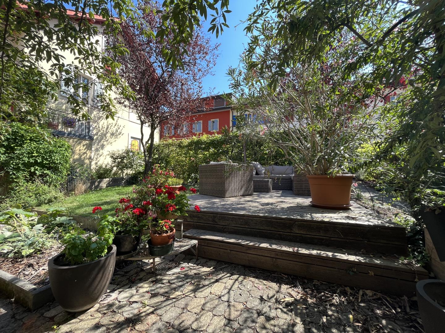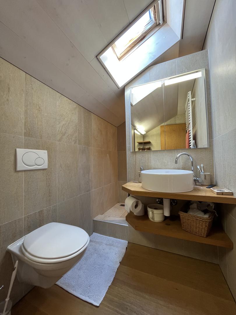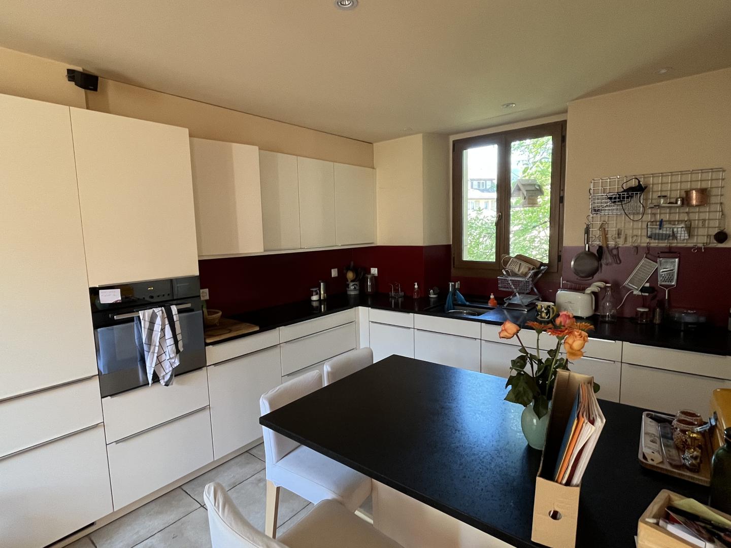 Magnifique duplex de 174m2 composé d'une grande cuisine ouverte, moderne et entièrement équipée avec des matériaux de qualité, un poêle en pierre ollaire, un vaste espace séjour-salle à manger agrémenté d'une cheminée, 5 chambres dont une suite parentale, 3 salles de bain, 2 locaux de rangement, une cave - buanderie - chaufferie. Un magnifique jardin côté sud avec plusieurs plates-bandes pour jardin potager, une grande terrasse côté sud ainsi que deux places de parc extérieures complètent ce bien plein de charme et d'exception.