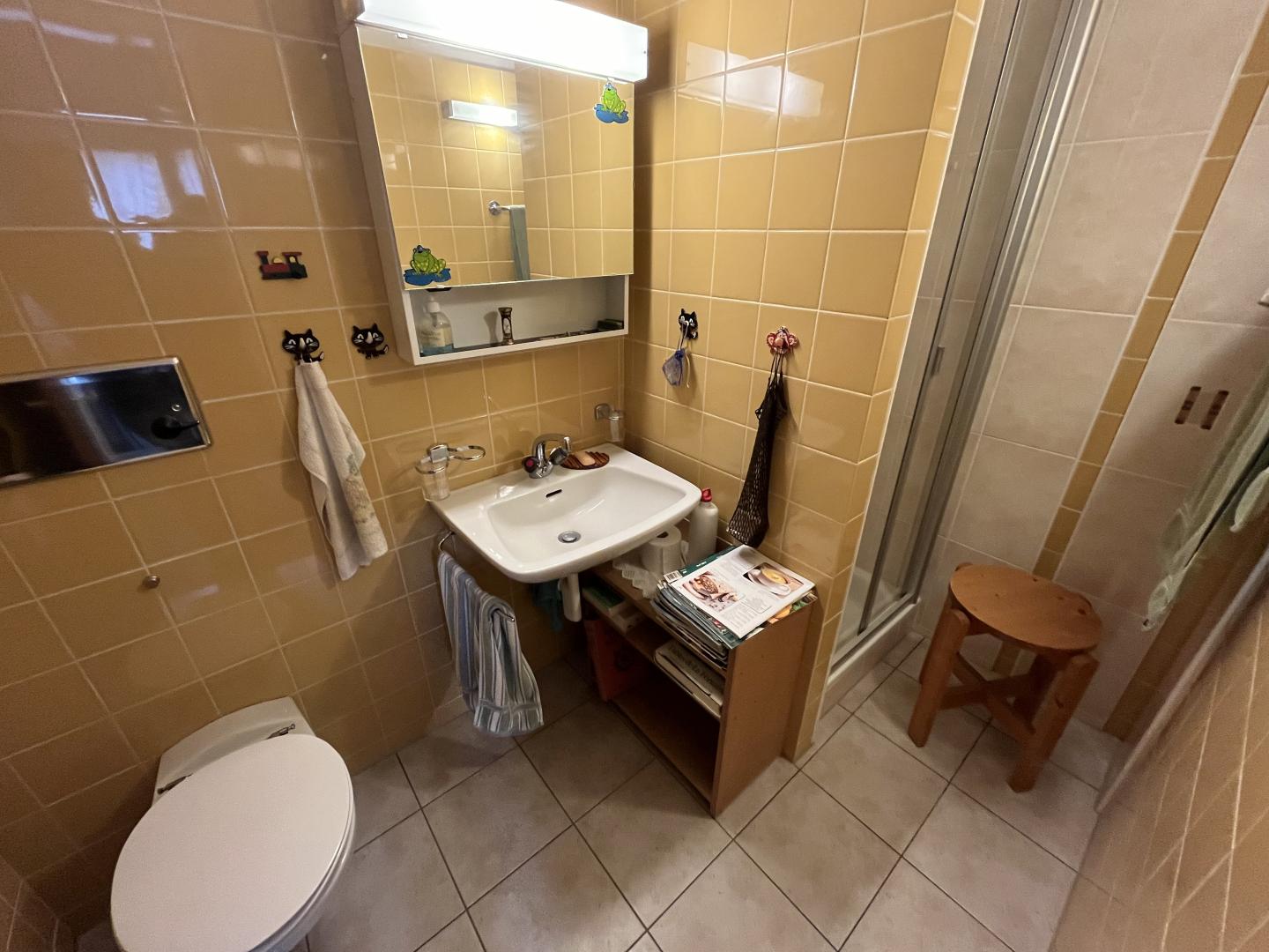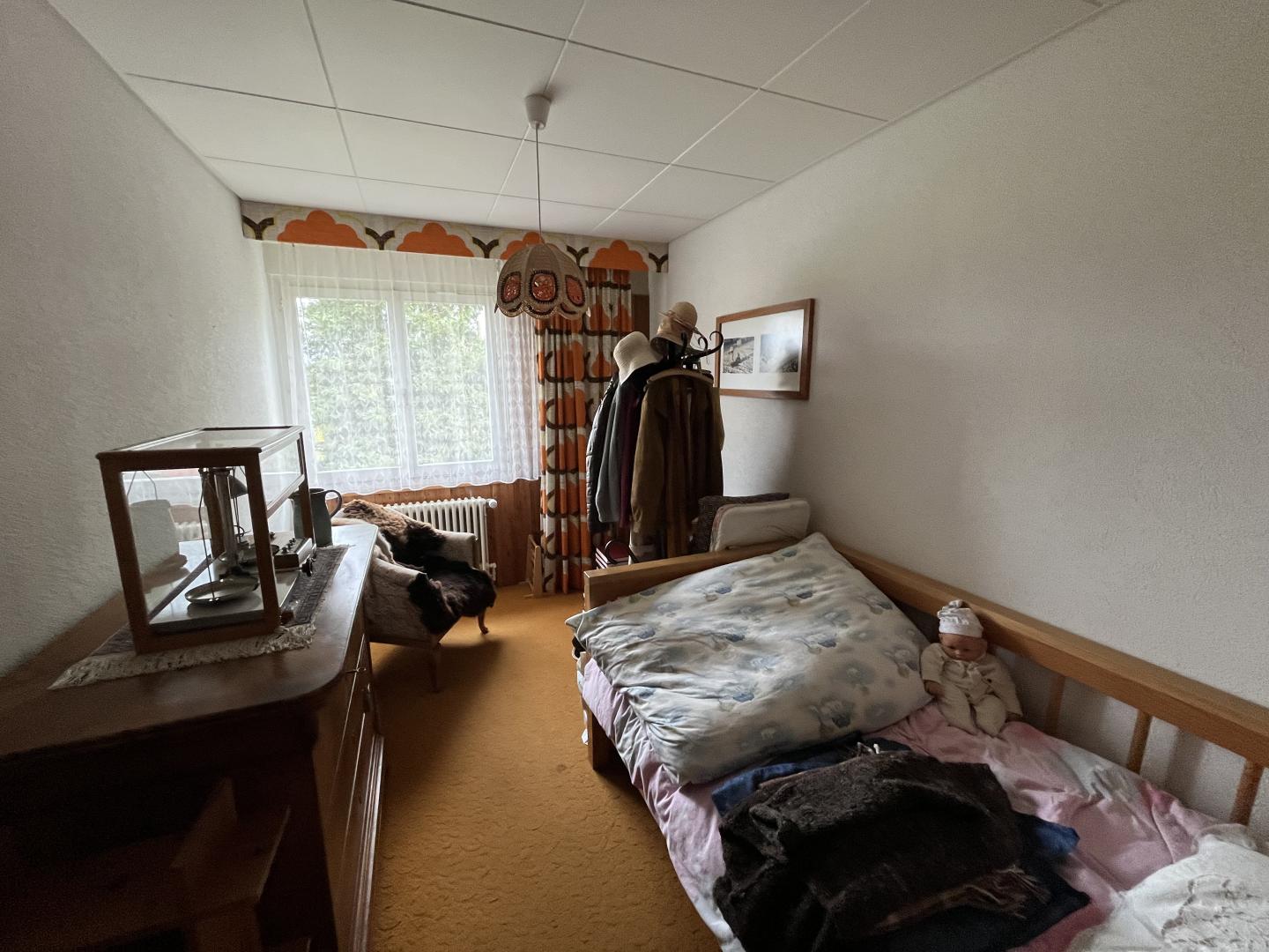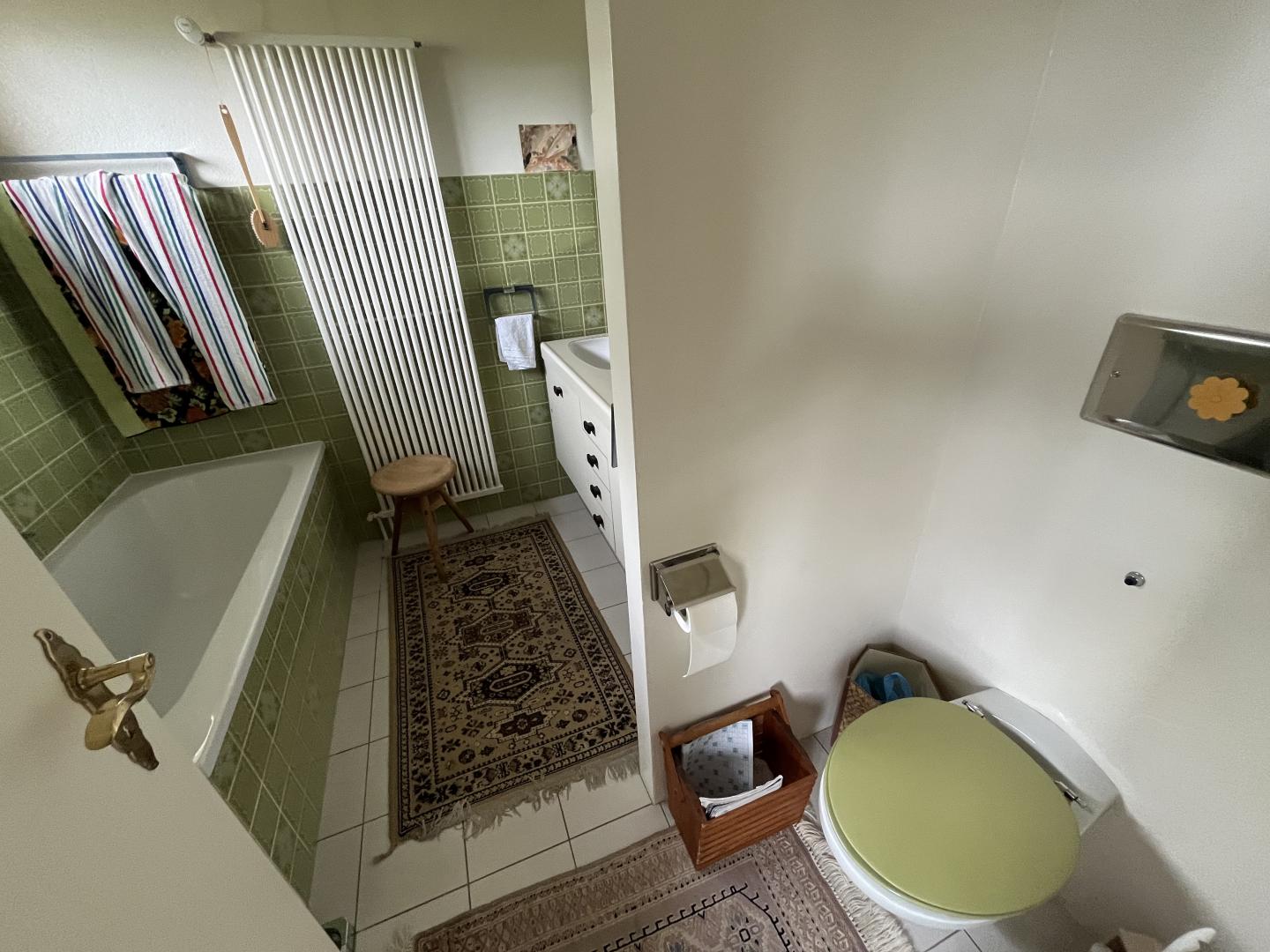 Ce bien immobilier, à vendre AVEC UN DROIT VIAGER, se compose ainsi: un généreux hall d'entrée, un vaste et lumineux espace séjour-salle à manger agrémenté d'une cheminée, une cuisine semi-ouverte, cinq pièces dont trois sont actuellement aménagées en chambre à coucher, deux salles de bain (1x WC/douche/baignoire + 1x WC/douche), un local technique avec buanderie et divers locaux-espaces de rangement. Accès à un grand galetas depuis la dernière pièce (escalier en bois).
